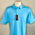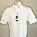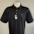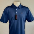 Polo shirts are made of 95% performance fabric, 5% spandex. It is the ultimate in performance fabric technology. An absorbent under layer wicks away moisture and dries quickly. It is a full cut shirt that won’t shrink or fade. Cold water wash and hang dry.